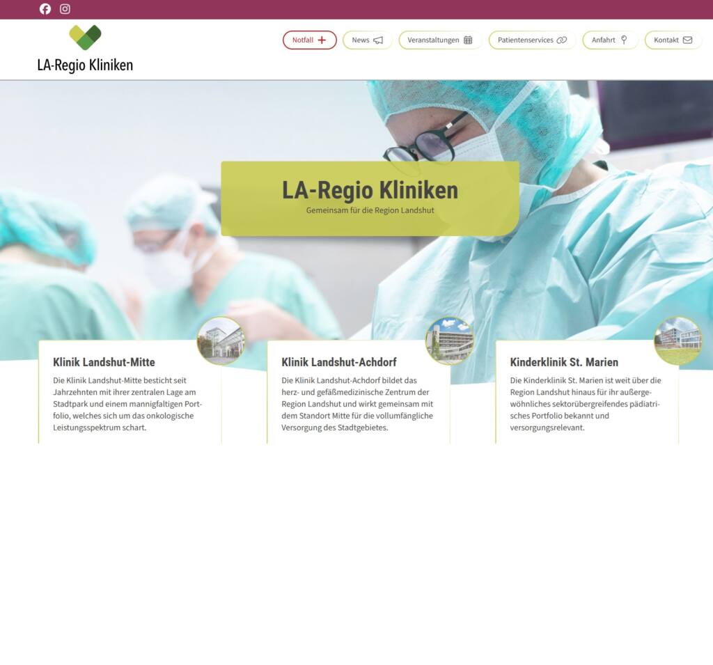 Neue gemeinsame Website Präsenz der LA-Regio Kliniken